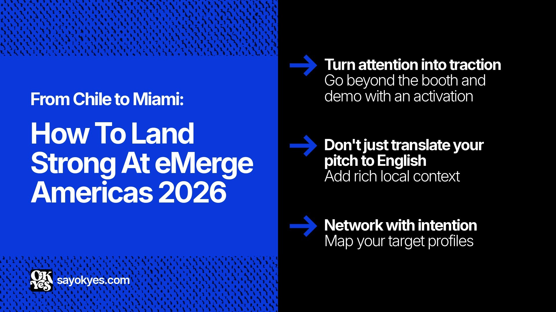 Preparing for eMerge Americas 2026 is not about showing up with a booth or a pitch deck, but about entering the U.S. market with clarity, positioning, and intent. This article breaks down how Ok Yes Pitch is helping Plango, a Chilean prop-tech company selected by ProChile, prepare for the eMerge Americas Global Startup Accelerator + Showcase by refining go-to-market communications, pitch strategy, real-world product demonstrations, and post-event follow-up; turning conference visibility into real commercial traction.